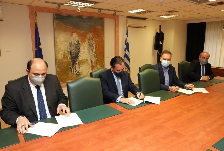 Μνημόνιο συνεργασίας μεταξύ του Υπουργού Ανάπτυξης και Επενδύσεων, κ. Άδωνη Γεωργιάδη, παρουσία του Αναπληρωτή Υπουργού, κ. Νίκου Παπαθανάση, εμού και του Προέδρου του Διοικητικού Συμβουλίου και Επιστημονικού Διευθυντή του ΚΕΠΕ, Καθηγητή κ. Παναγιώτη Λιαργκόβα.