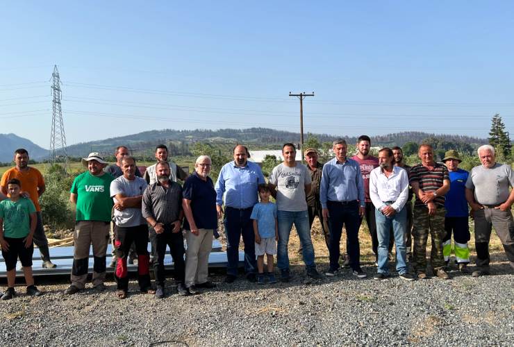 Στη συνέχεια, και στο πλαίσιο των συχνών επισκέψεών του στη Βόρεια Εύβοια, ο κ. Χρήστος Τριαντόπουλος επισκέφθηκε εκ νέου χωριά της περιοχής που επλήγησαν από τις πυρκαγιές του περσινού καλοκαιριού, και είχε την ευκαιρία να συναντηθεί και να συνομιλήσει με αγρότες, κτηνοτρόφους και πολίτες. Στο πλαίσιο της συνεργασίας με τους παραγωγούς της περιοχής, είχε, επίσης, συνάντηση με τον Αγροτικό – Κτηνοτροφικό Συνεταιρισμό Βόρειας Εύβοιας, κατά την οποία συζητήθηκε η κατάσταση του κλάδου, ενώ έλαβε χώρα και μία σημαντική ιδιωτική πρωτοβουλία. Συγκεκριμένα, στη συνάντηση παρευρέθηκαν και εκπρόσωποι του Ιδρύματος Αικατερίνης Λασκαρίδη, το οποίο πραγματοποίησε σημαντική δωρεά για τη στήριξη των κτηνοτρόφων της Βόρειας Εύβοιας, με την παράδοση υλικού για την αποκατάσταση των μετακινούμενων κτηνοτροφικών εγκαταστάσεών τους, έκτασης περίπου 2.500 τ.μ. και βάρους 8 τόνων, με το κόστος αυτών να ανέρχεται περίπου στο ποσό των 20.000 ευρώ.
