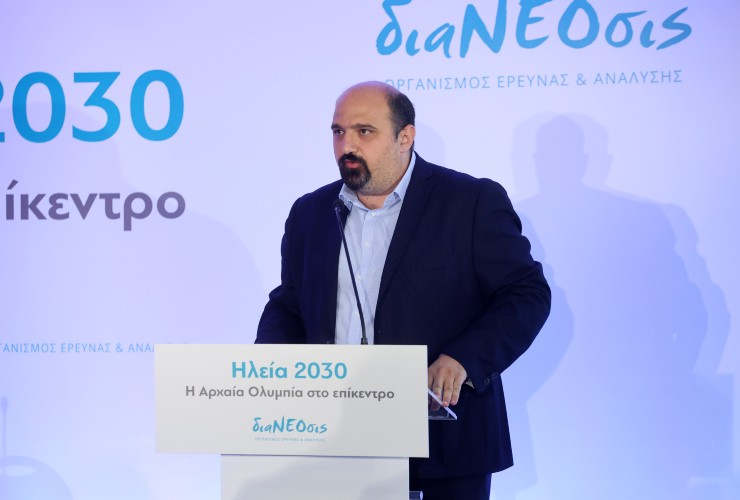 «Είναι μια δύσκολη ημέρα σήμερα, καθώς η Αττική και άλλες περιοχές της χώρας μας δοκιμάζονται από πυρκαγιές, με το Πυροσβεστικό Σώμα, τους αρμόδιους φορείς και υπηρεσίες, αλλά και ιδιώτες εθελοντές να δίνουν μία μεγάλη μάχη. Μάχη, γρήγορα νικηφόρα απέναντι στην πύρινη λαίλαπα. Σήμερα βρισκόμαστε σε μία άλλη περιοχή που επλήγη προ μηνών από πυρκαγιά, στην Αρχαία Ολυμπία, στον ιστορικό τόπο της Αρχαίας Ολυμπίας, για το αναπτυξιακό συνέδριο που αποτελεί κομβικό σημείο για την πορεία εκπόνησης του σχεδίου βιώσιμης ανάπτυξης της περιοχής. Συνέδριο, το οποίο διοργανώνεται από τη διαΝΕΟσις, σε συνέχεια του Μνημονίου Συνεργασίας που υπογράψαμε, και έχει ως αντικείμενο την εκπόνηση μελέτης για την ανασυγκρότηση και ανάπτυξη της Ηλείας με επίκεντρο την Αρχαία Ολυμπία. Με στόχο να τεθούν οι βάσεις, μέσα από την επιστημονική και ερευνητική εργασία, για τη διαμόρφωση ενός ολοκληρωμένου, συνεκτικού πλάνου μακροπρόθεσμης βιώσιμης ανάπτυξης της περιοχής.