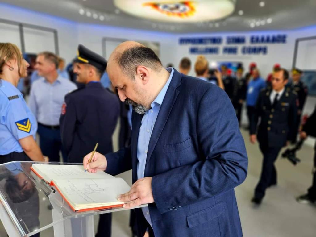 Το Σάββατο, το πρωί, ο Υφυπουργός, κ. Χρήστος Τριαντόπουλος, επισκέφθηκε τα περίπτερα της 88ης ΔΕΘ και, ειδικότερα, το περίπτερο του Πυροσβεστικού Σώματος, όπου πραγματοποιήθηκαν τα εγκαίνια με τον Υπουργό, Βασίλη Κικίλια, και το Γενικό Γραμματέα Αποκατάστασης Φυσικών Καταστροφών και Κρατικής Αρωγής, Πέτρο Καμπούρη, με την ηγεσία του Σώματος, αλλά και τα δυναμικά στελέχη του, τα οποία, με όλους τους συνεργαζόμενους φορείς και τους εθελοντές, δίνουν την καθημερινή μάχη απέναντι και πάντα δίπλα στον πολίτη.