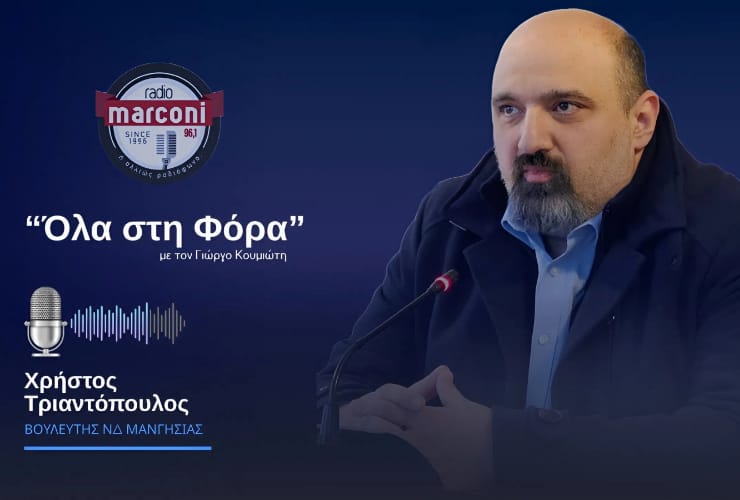 Συνέντευξη του βουλευτή της Νέας Δημοκρατίας στη Μαγνησία, κ. Χρήστου Τριαντόπουλου, στον Γιώργο Κουμιώτη και στο Ράδιο Marconi 96.1 FM, όπου είχανε την ευκαιρία να συζητήσουν για τα έργα υποδομών υπό το Υπουργείο Υποδομών και Μεταφορών και την Περιφέρεια Θεσσαλίας.