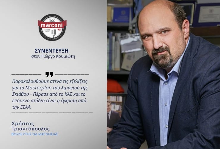 Συνέντευξη του βουλευτή της Νέας Δημοκρατίας στη Μαγνησία, κ. Χρήστου Τριαντόπουλου, στην εκπομπή του Γιώργου Κουμιώτη, στο Ράδιο Marconi 96.1FM, όπου συζήτησαν για τις αναπτυξιακές παρεμβάσεις που γίνονται στη Μαγνησία.