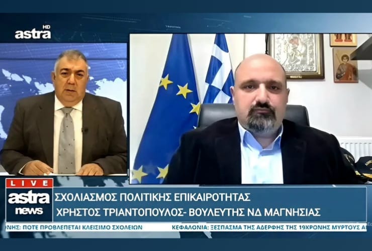 Συνέντευξη του βουλευτή της Νέας Δημοκρατίας στη Μαγνησία, κ. Χρήστου Τριαντόπουλου, στο Κεντρικό Δελτίο Ειδήσεων του AstraTV και τον δημοσιογράφο Μάκη Θεοδώρου, όπου συζήτησαν – μεταξύ άλλων – για: