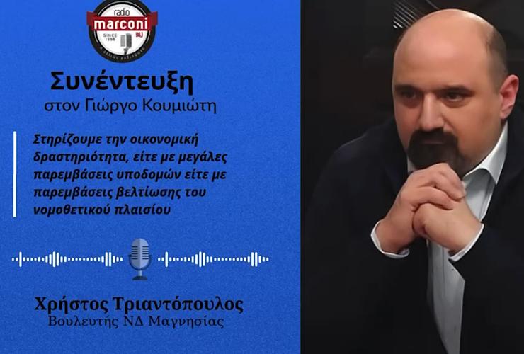 Συνέντευξη του βουλευτή της Νέας Δημοκρατίας στη Μαγνησία, κ. Χρήστου Τριαντόπουλου, στην εκπομπή του Γιώργου Κουμιώτη, στο Ράδιο Marconi 96.1FM, όπου συζήτησαν για την πρόταση που κατέθεσε ο βουλευτής επί του προβλήματος που αντιμετωπίζουν οι επαγγελματίες του παραλιακού μετώπου της Σκιάθου και δη του ζητήματος των αυθαίρετων ξύλινων κατασκευών στη χερσαία ζώνη του λιμένα.