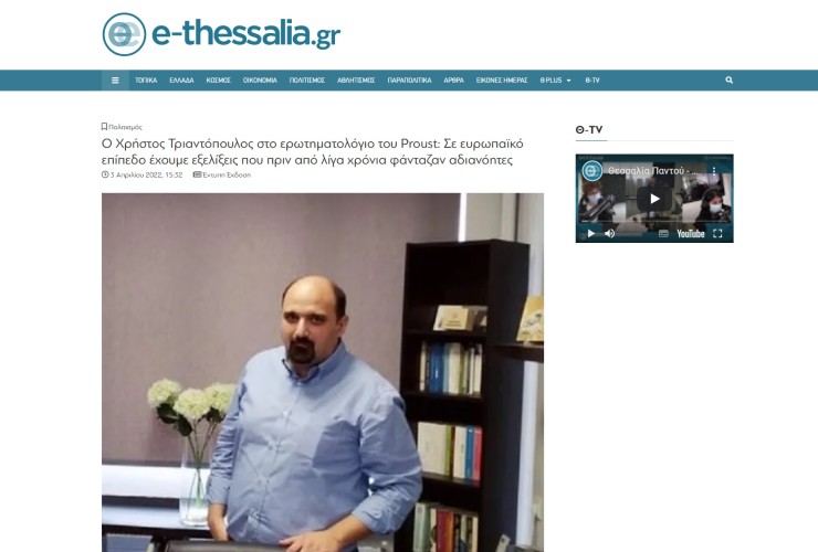 Συνέντευξη στην εφημερίδα «Θεσσαλία» (03.04.2022)
