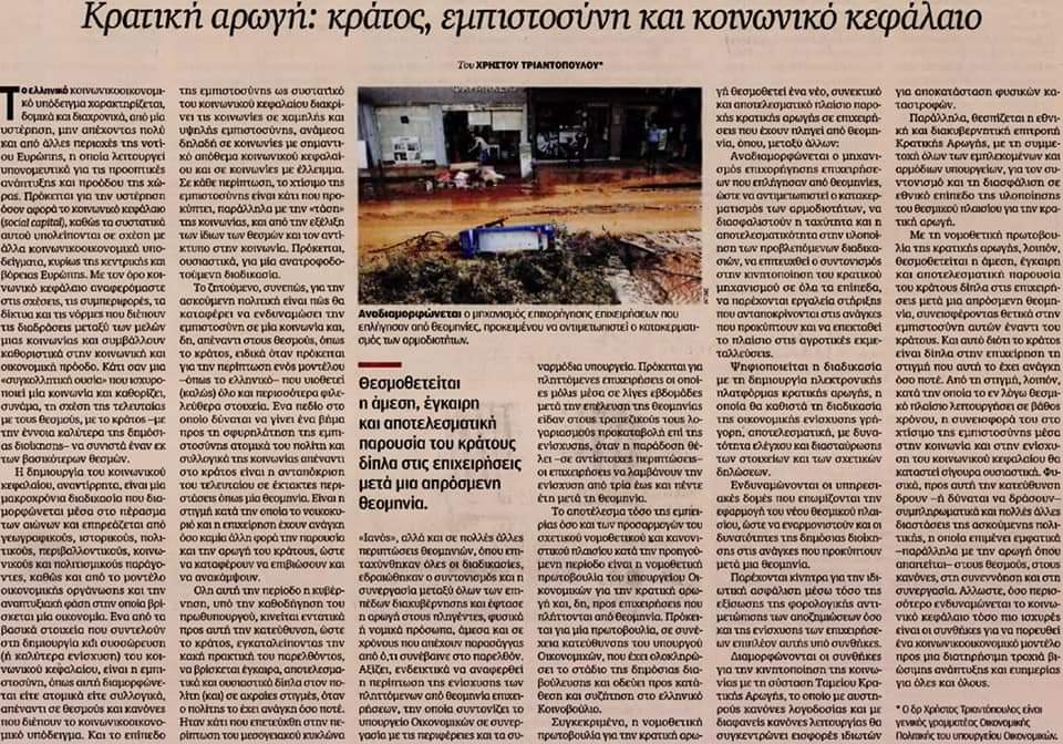 Κρατική αρωγή: κράτος, εμπιστοσύνη και κοινωνικό κεφάλαιο
