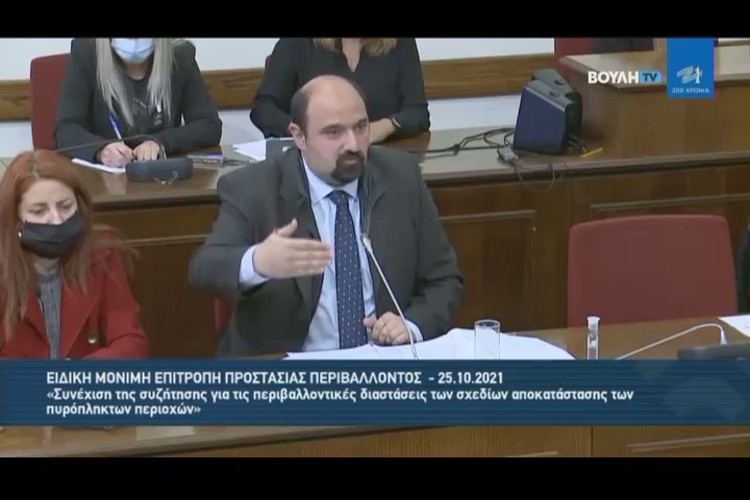 Στην Ειδική Μόνιμη Επιτροπή Προστασίας Περιβάλλοντος της Βουλής για την αποκατάσταση των πυρόπληκτων περιοχών
