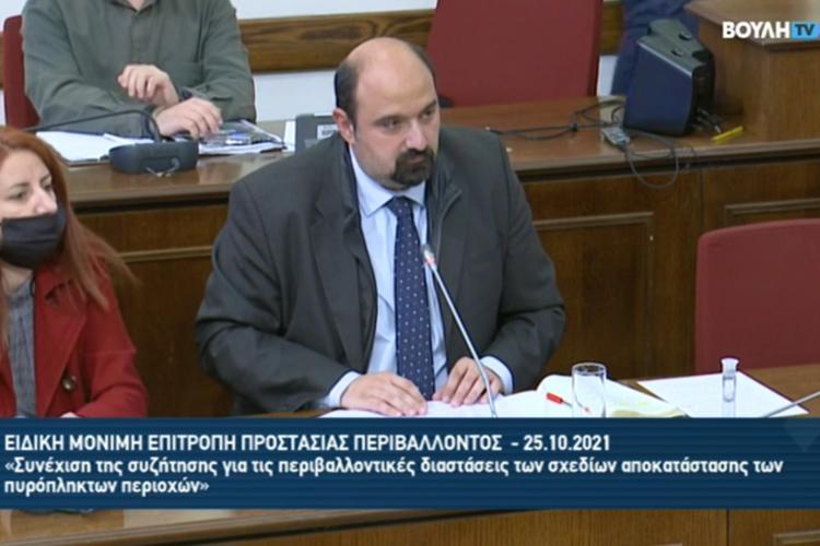 Στις 25 Οκτωβρίου 2021 ενημέρωσα τα μέλη της Ειδικής Μόνιμης Επιτροπής Προστασίας Περιβάλλοντος της Βουλής για την πορεία υλοποίησης των μέτρων στήριξης και αποκατάστασης στις περιοχές που επλήγησαν από τις μεγάλες πυρκαγιές του καλοκαιριού, δίνοντας ιδιαίτερη έμφαση στην Εύβοια.