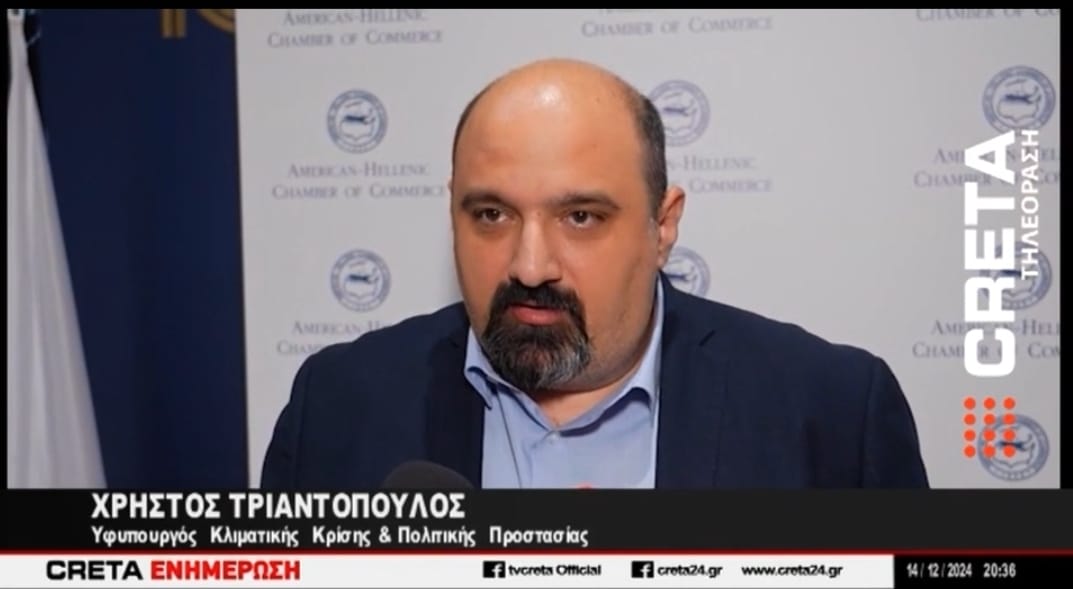 Δηλώσεις του Υφυπουργού Κλιματικής Κρίσης και Πολιτικής Προστασίας, αρμόδιου για την αποκατάσταση απο φυσικές καταστροφές και την κρατική αρωγή, κ. Χρήστου Τριαντόπουλου απο την εκδήλωση του Ελληνοαμερικανικού Εμπορικού Επιμελητηρίου με θέμα «Οι αναπτυξιακές προοπτικές της Κρήτης. Το νέο περιβάλλον των διατλαντικών και των ελληνο-αμερικανικών σχέσεων»,που πραγματοποιήθηκε στο κτίριο του Επιμελητηρίου Κρήτης την Παρασκευή, 13 ΔεκεμβρίουΣυνέχεια ανάγνωσης «Δηλώσεις απο την εκδήλωση του Ελληνοαμερικανικού Επιμελητηρίου στο Ηράκλειο»