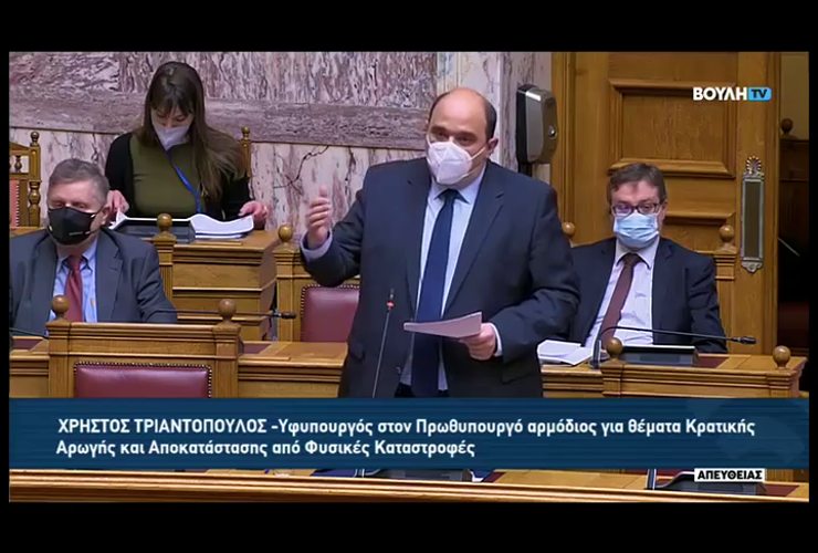 Απάντηση Χρ. Τριαντόπουλου σε επίκαιρη ερώτηση με θέμα την καταβολή αποζημιώσεων στους πυρόπληκτους αγρότες