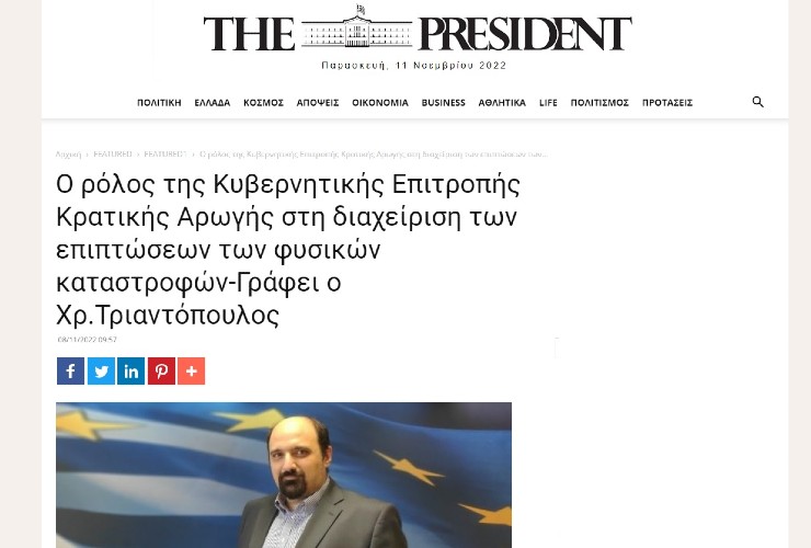 Ο ρόλος της Κυβερνητικής Επιτροπής Κρατικής Αρωγής διαχείριση των επιπτώσεων των φυσικών καταστροφών